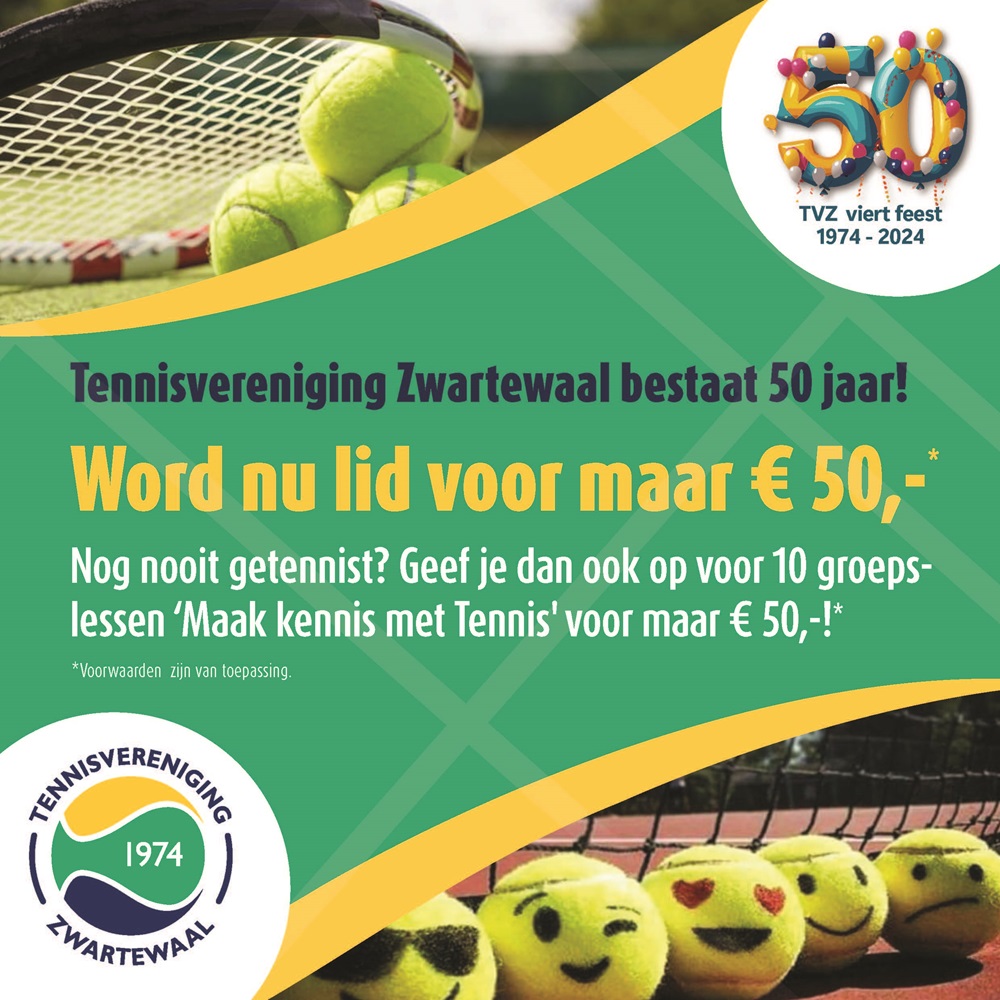 - Tennis lidmaatschap loopt tot 31/12/2024 en wordt automatisch omgezet naar een regulier lidmaatschap. Opzeggen kan vóór 1 januari 2025. Inschrijven doe je via: T.V. Zwartewaal (tvzwartewaal.nl)